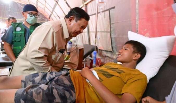 Setibanya di posko pengungsian, Presiden Prabowo disambut antusiasme anak-anak yang menyambut dengan nyanyian, “Selamat datang, Bapak.” Setelahnya Presiden Prabowo menuju posko kesehatan yang tengah memberikan layanan medis kepada warga terdampak.