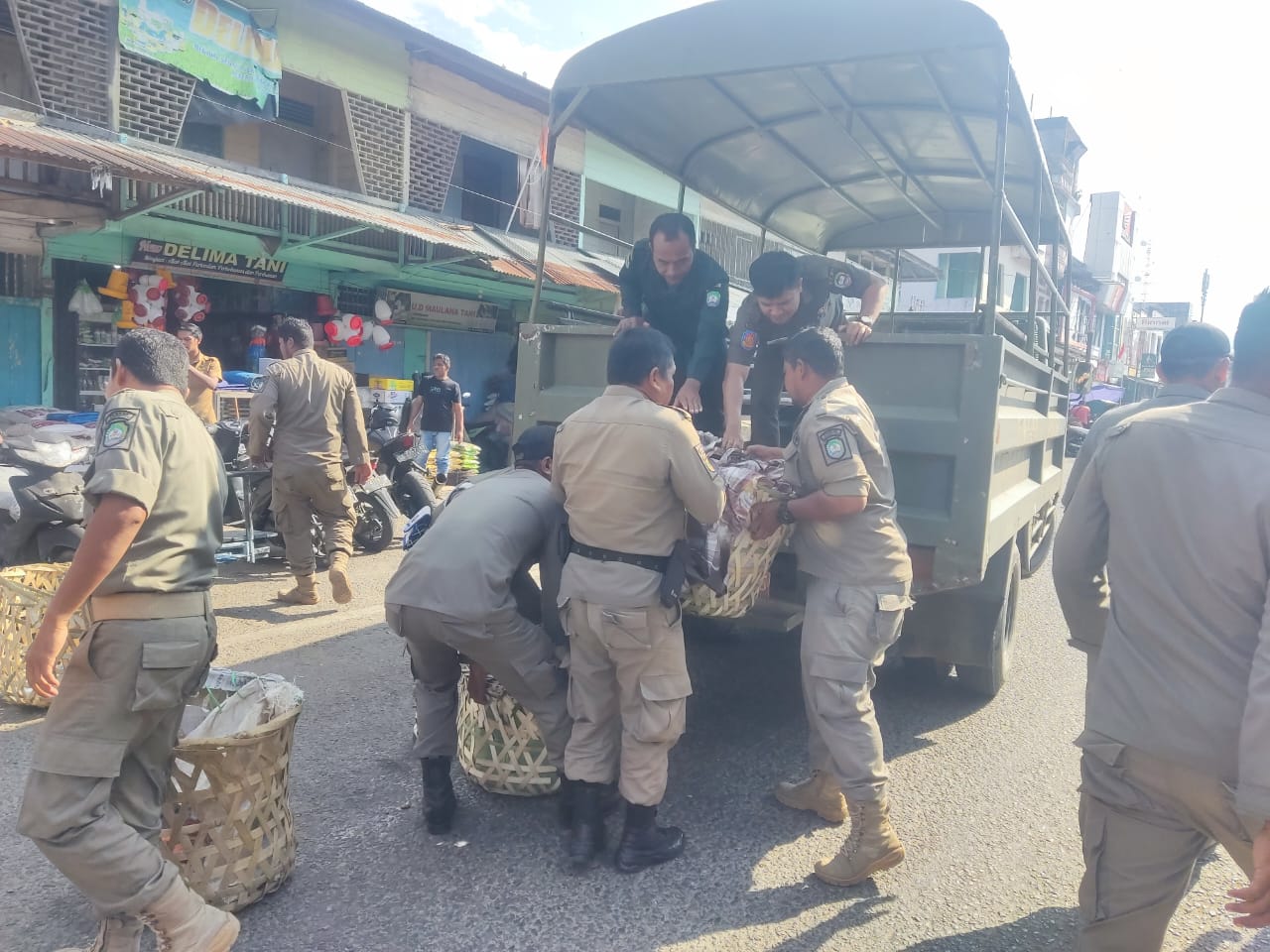 Penertiban difokuskan pada pedagang yang berjualan hingga melampaui batas di sepanjang Jalan H. Ilyas dan sejumlah ruas jalan sekitar pasar.