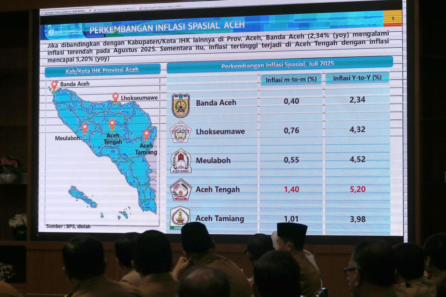Data tersebut dipaparkan dalam Rapat Kerja (Raker) Bupati/Wali Kota se-Aceh yang dipimpin langsung oleh Gubernur Aceh Muzakir Manaf di Ruang Serba Guna Kantor Gubernur Aceh, Senin (8/9/2025). Hadir dalam rapat tersebut Wali Kota Banda Aceh Illiza Sa’aduddin Djamal, Wakil Gubernur Aceh Fadhlullah, Sekda Aceh M Nasir, serta para bupati/wali kota dari seluruh Aceh.