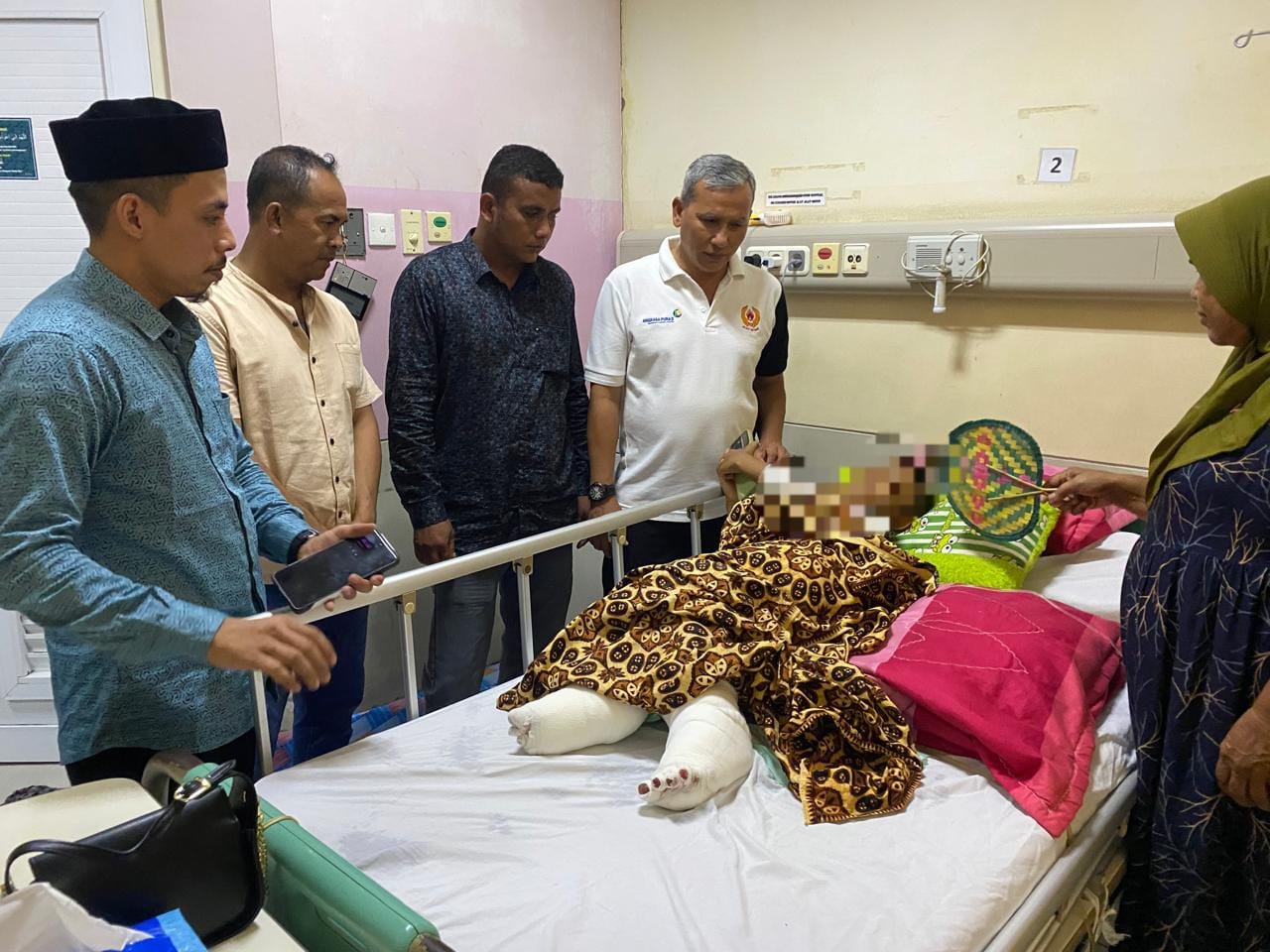 Kepala Disparpora, Abdullah, bersama Keuchik Gampong Ie Suum, Bhabinkamtibmas Kecamatan Mesjid Raya, serta Ketua Pemuda Gampong Ie Suum menjenguk Alfattah di Rumah Sakit Umum Daerah Zainoel Abidin (RSUDZA), Banda Aceh, Rabu (8/4/2025) malam.