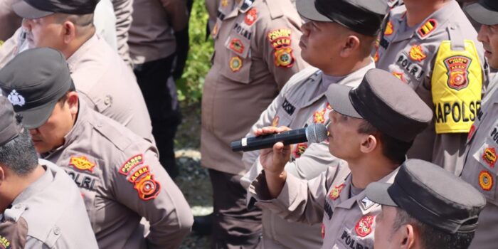 Koordinasi lapangan antar personel kepolisian dilakukan secara intens untuk merespons situasi dinamis di lokasi. (Foto INISIATIF.CO).