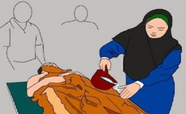 Kemudian saat hendak membasuhi badan, istrinya berkata, “Tubuh inilah yang memberi pelukan kasih sayang padaku dan anak-anakku. Semoga Allah memberi pahala berganda untukmu wahai suamiku.”
