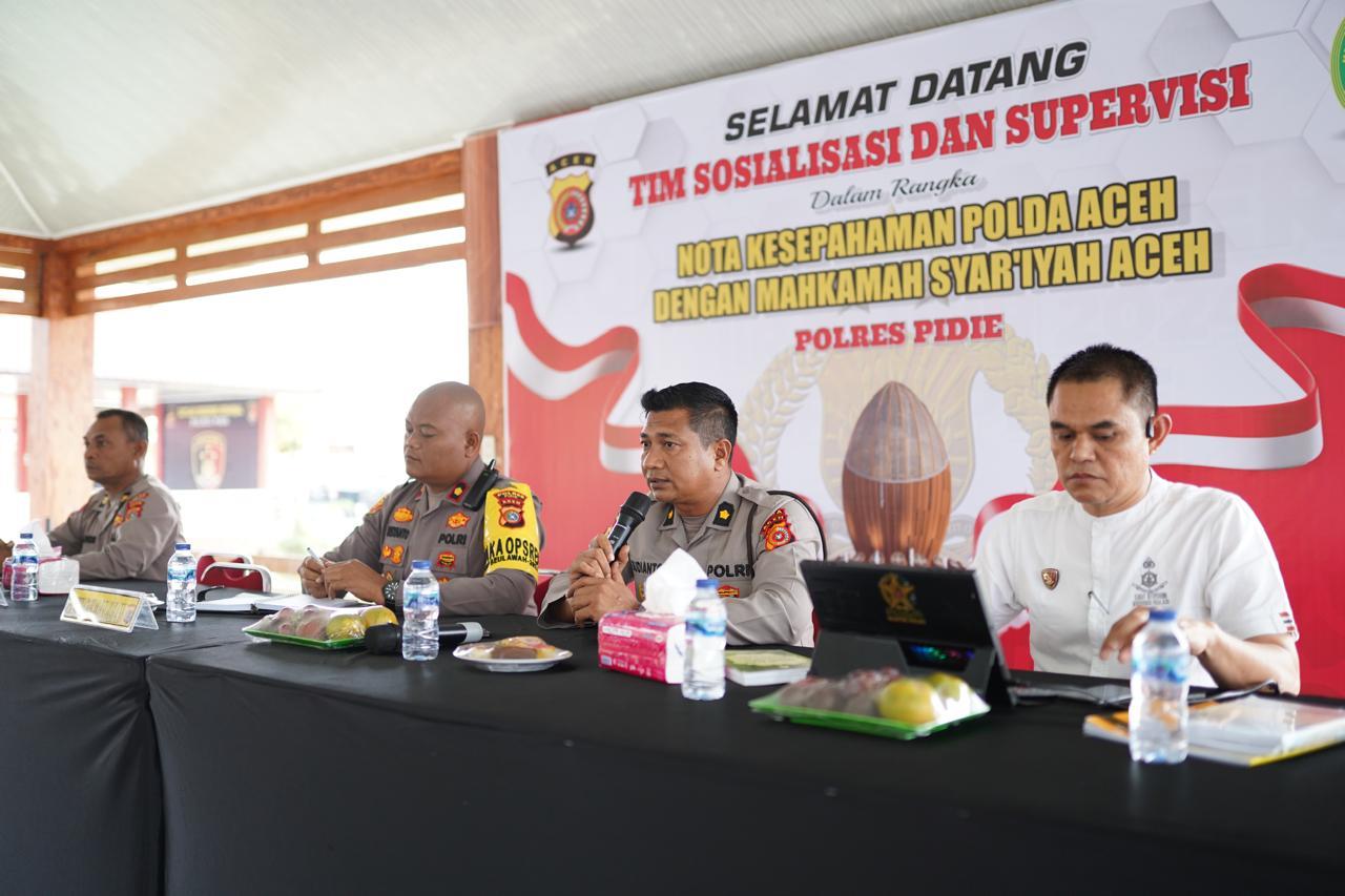 Kapolres Pidie Terima Kunjungan Tim Sosialisasi dan Supervisi Nota Kesepahaman Polda Aceh dengan Mahkamah Syariah