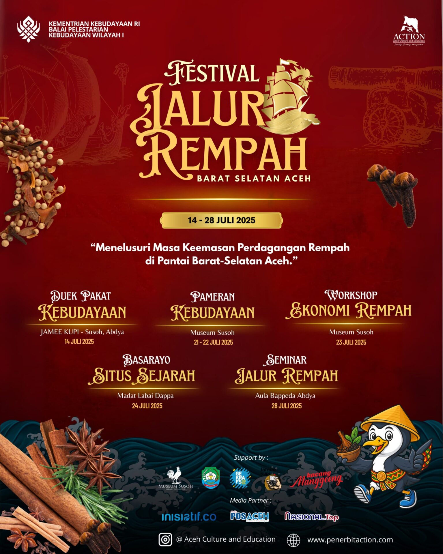 Kegiatan tersebut menjadi agenda pembuka Festival Jalur Rempah Barsela 2025 yang diinisiasi oleh Lembaga Aceh Culture and Education. Acara ini mengangkat tema besar “Menelusuri Sejarah Masa Keemasan Perdagangan Rempah di Pantai Barat-Selatan Aceh”, dan akan berlangsung selama enam hari dengan lima agenda utama.