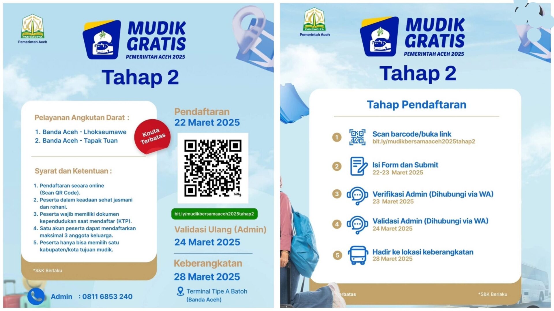 , Banda Aceh – Pemerintah Aceh melalui Dinas Perhubungan (Dishub) resmi membuka pendaftaran program mudik gratis tahap kedua.