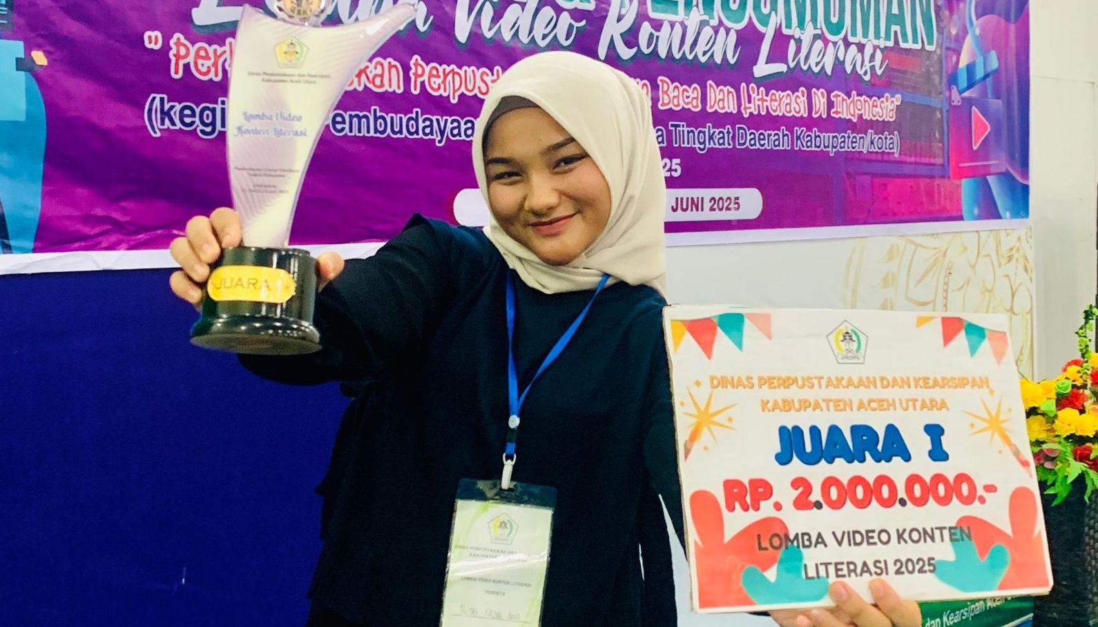 , Aceh Utara – Putri Najwa, kader aktif Ikatan Pemuda Aceh Utara (IPAU) Banda Aceh, berhasil meraih Juara I dalam ajang Lomba Video Kreatif yang digelar oleh Dinas Perpustakaan dan Kearsipan (Dispusip) Kabupaten Aceh Utara. Pengumuman pemenang tersebut dilakukan pada Selasa, (24/6/2025).