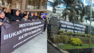 Tuntutan tersebut juga mencakup kecaman terhadap keluarga Menteri Satryo, yang dianggap terlalu ikut campur dalam pengelolaan kementerian, dengan salah satu spanduk berbunyi, “Institusi negara bukan perusahaan pribadi Satryo dan istri.”