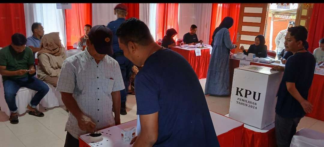Panitia memanggil pemilih satu per satu melalui pengeras suara berdasarkan nomor antrean yang tercantum dalam DPT. Proses berlangsung tertib dengan pengawalan ketat ratusan personel TNI-Polri serta pengawasan dari Panitia Pengawasan Pemilihan (Panwaslih).