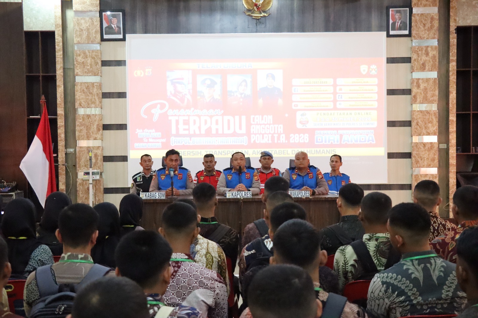 Kegiatan yang digelar di Aula Mapolres Abdya, Senin (30/3/2026), diikuti oleh peserta seleksi penerimaan terpadu Taruna Akpol, Bintara, hingga Tamtama Polri.