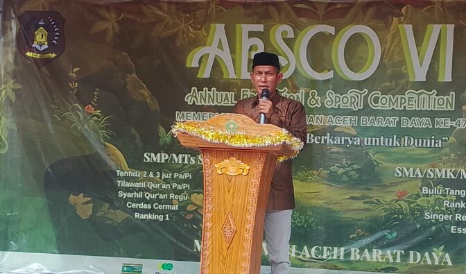 , Blangpidie — Wakil Ketua I Dewan Perwakilan Rakyat Kabupaten (DPRK) Aceh Barat Daya, Tgk Mustiari, menghadiri penutupan Ajang Seni dan Olahraga (Aesco) VI yang turut dirangkaikan dengan peringatan Milad ke-47 MAN Inovasi Abdya, Jumat (14/11/2025).